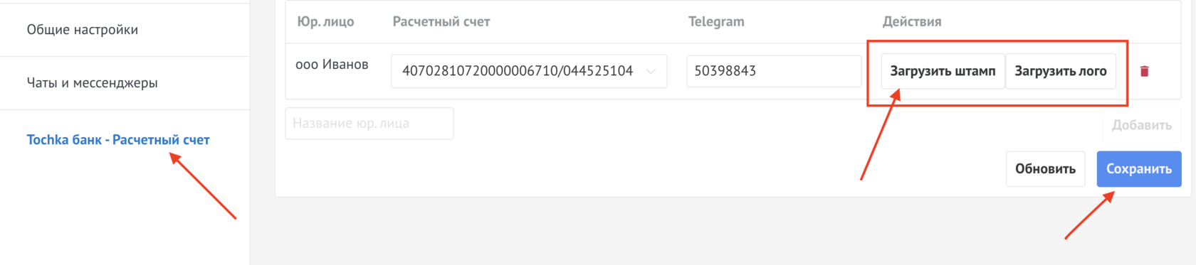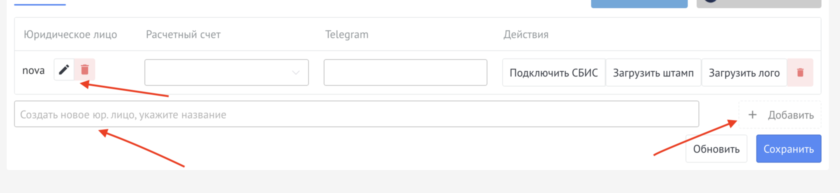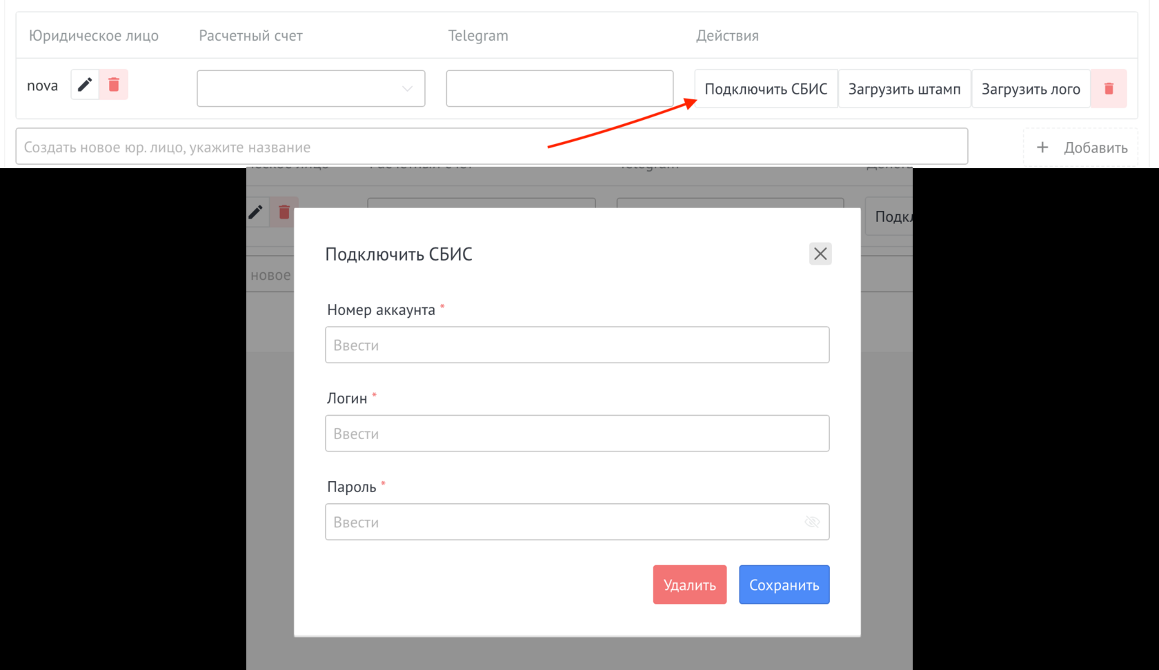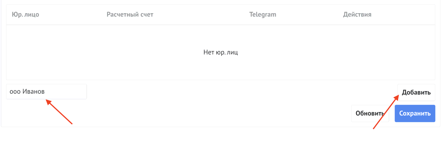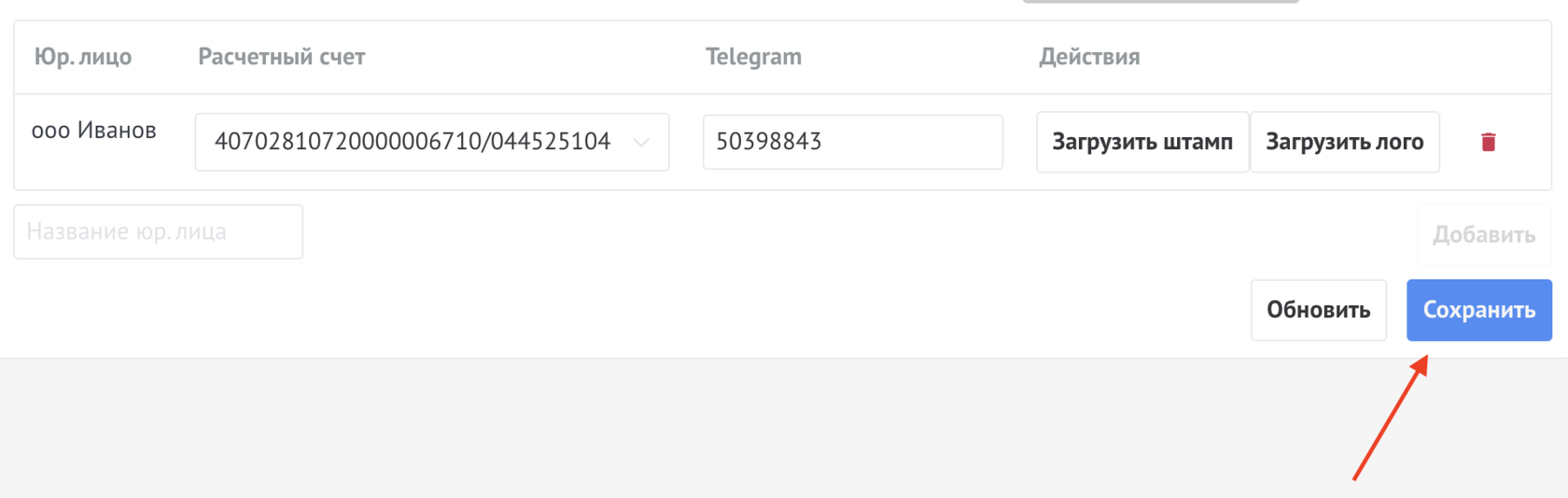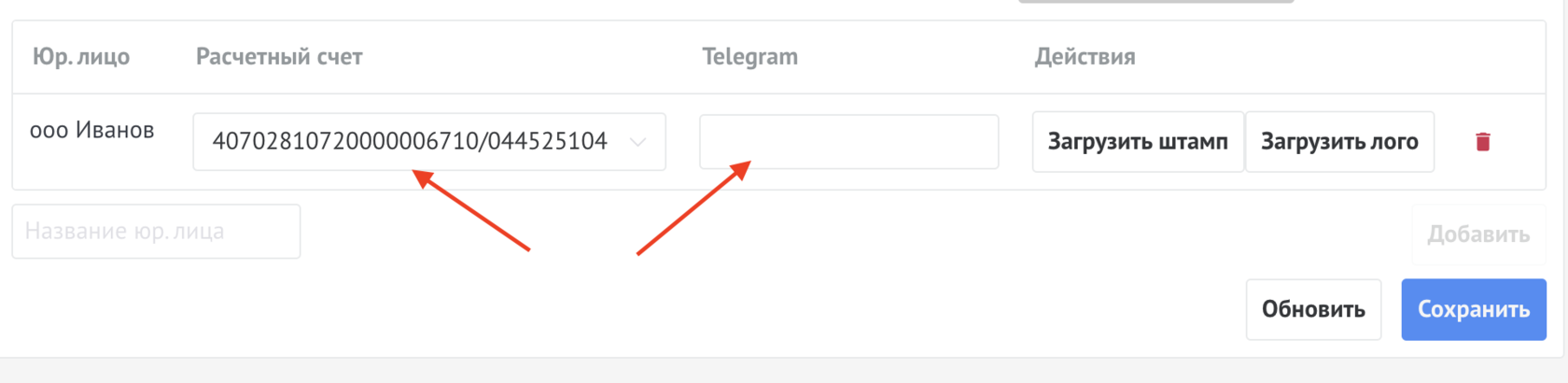 В поле Название Юр.лица ввести название