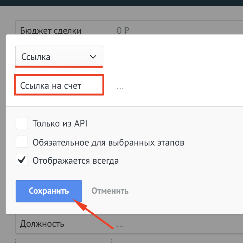 После завершенияч настройки необходимо нажать Сохранить