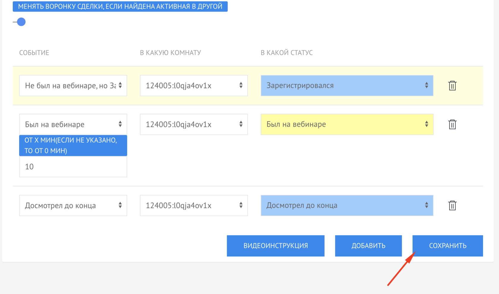 Создание сделок по участникам вебинаров