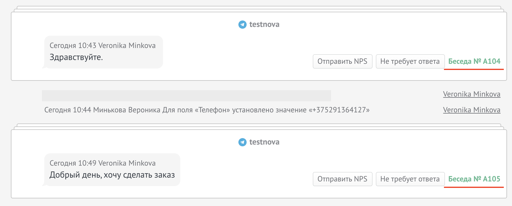 После добавления Источника можно добавить бота для инициализации сообщений, как это сделать можно прочитать в этой статье.Когда появиться два канала (чата) в одном контакте