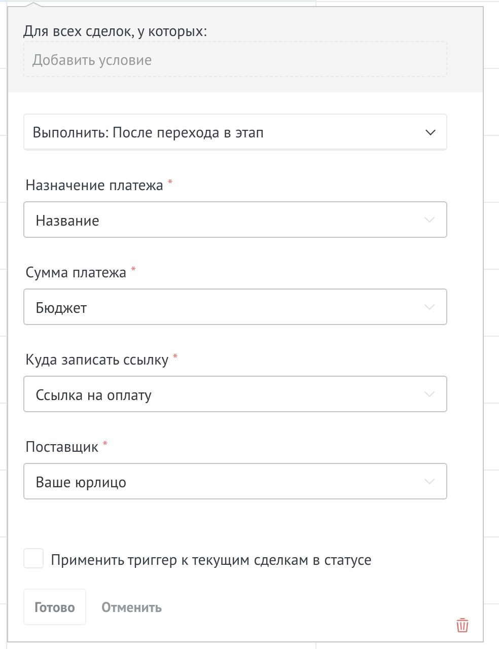 Для того чтобы одно из Юр.лиц автоматически подставлялась в счет, необходимо его сделать по умолчанию, кликнув на галочку