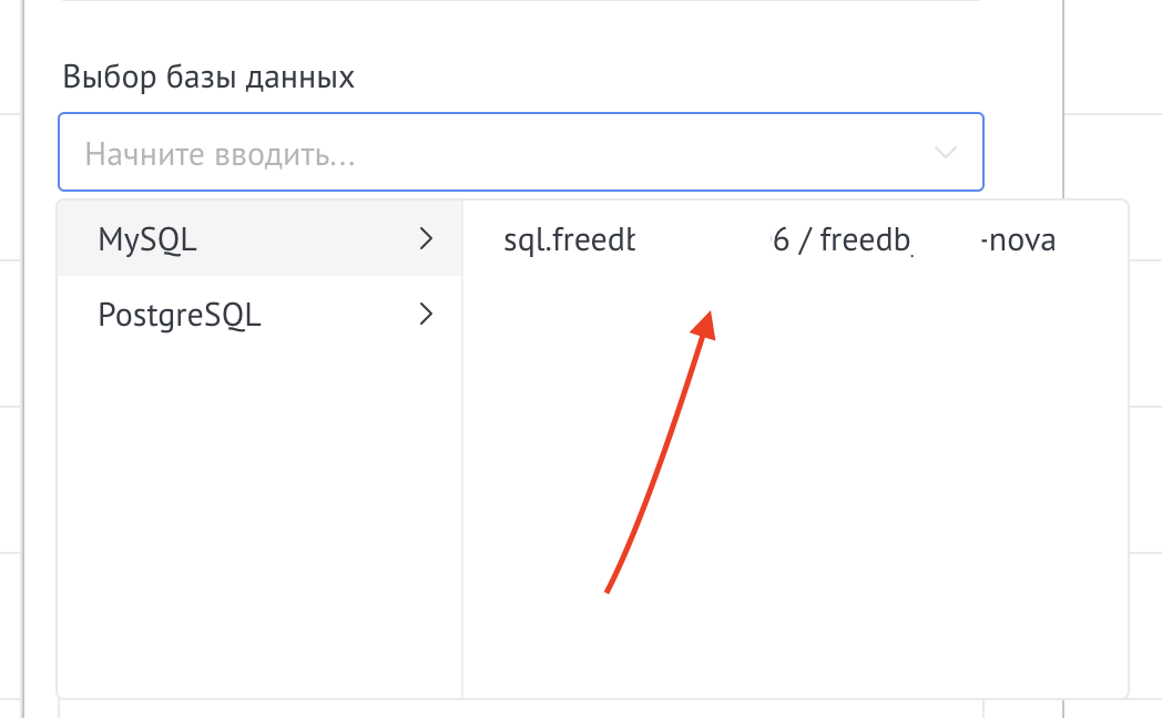 1. Выбрать Тип базы данных