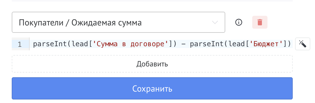 parseInt(lead['Сумма в договоре']) - parseInt(lead['Бюджет'])