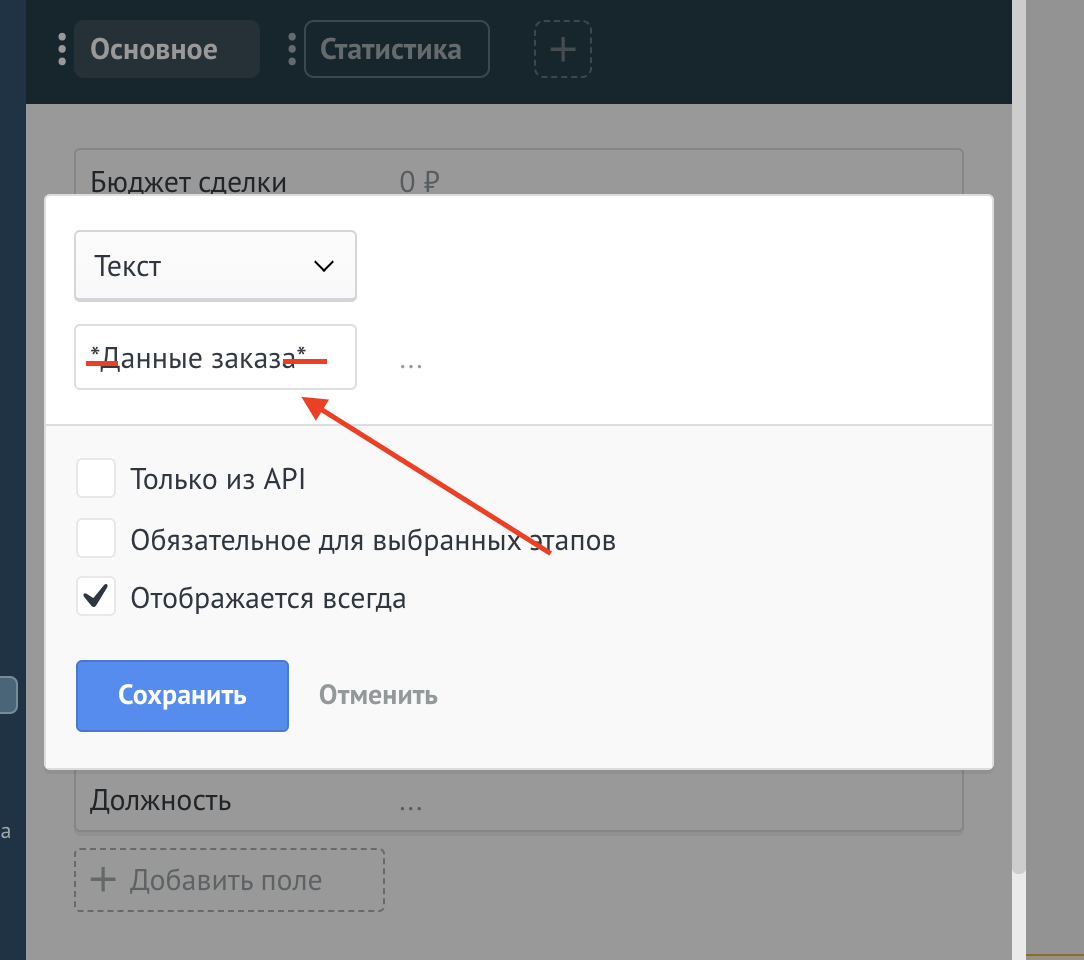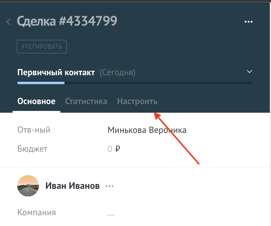 Для настройки виджета необходимо перейти в настройки сделки