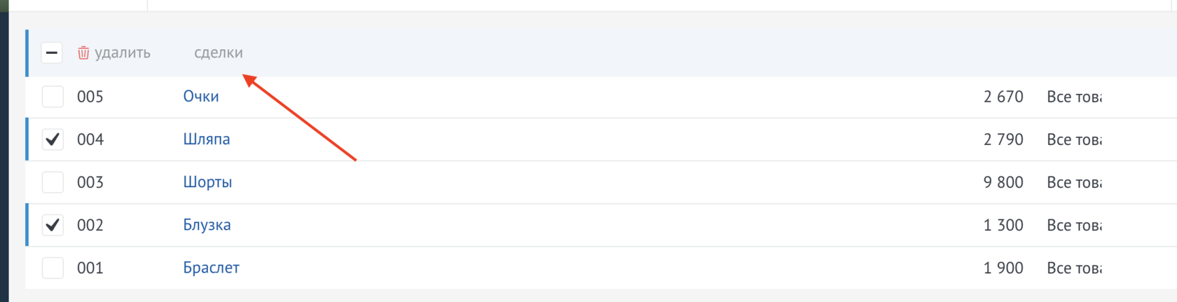 Выбрать необходимые сделки и действиях выбрать либо компании либо контакты
