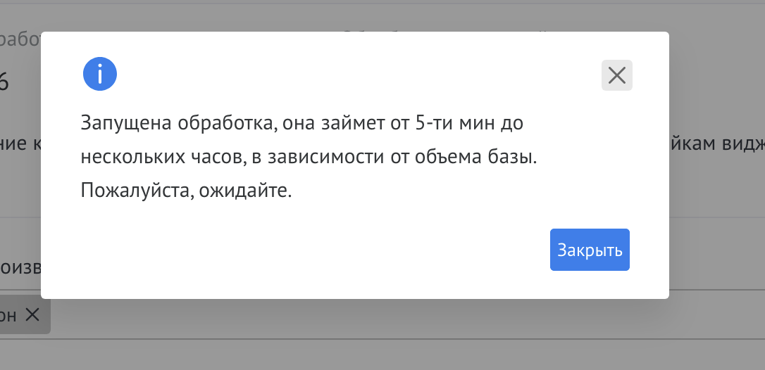 Чтобы объединить уже существующие дубли в CRM, включите опцию «Включить обработку базы сначала?» — виджет начнёт проверку всех компаний в базе.