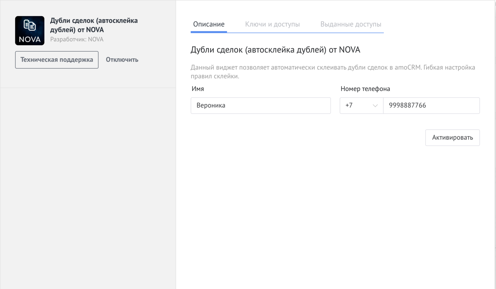 - Нажмите Активировать.