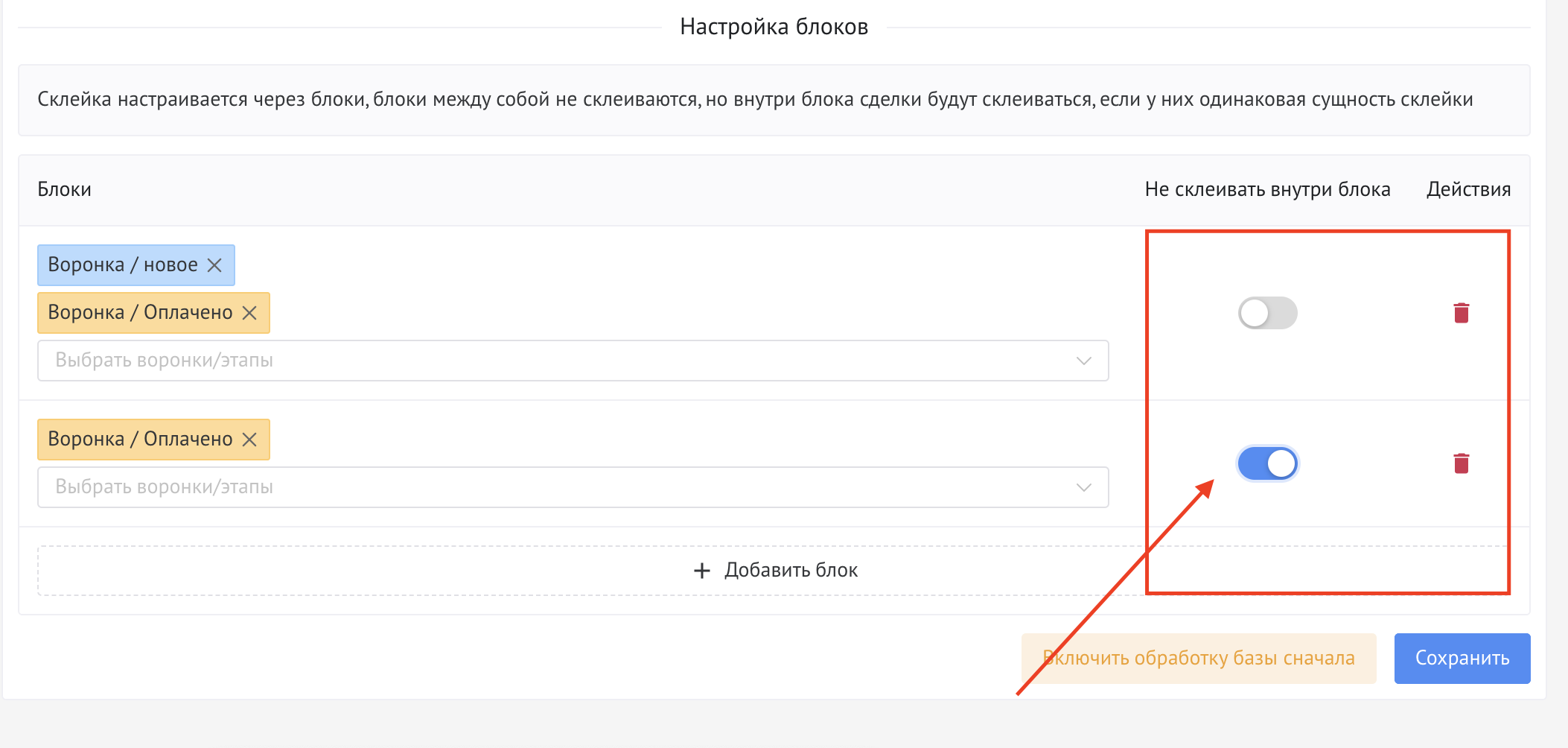Подробное руководство по работе с виджетом "Объединение дублей сделок"