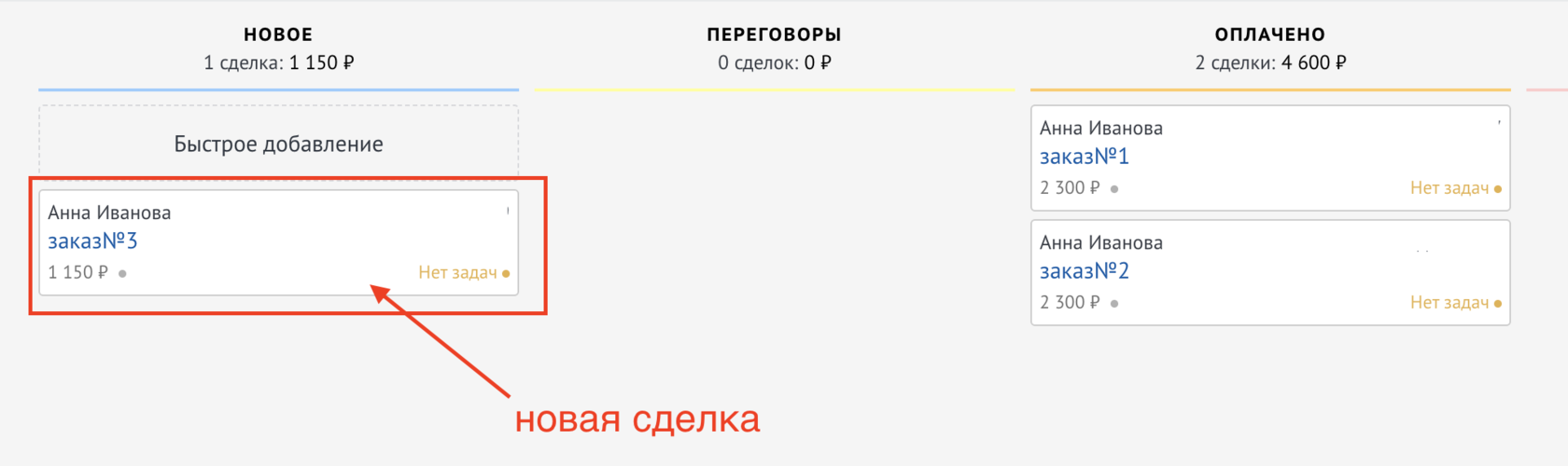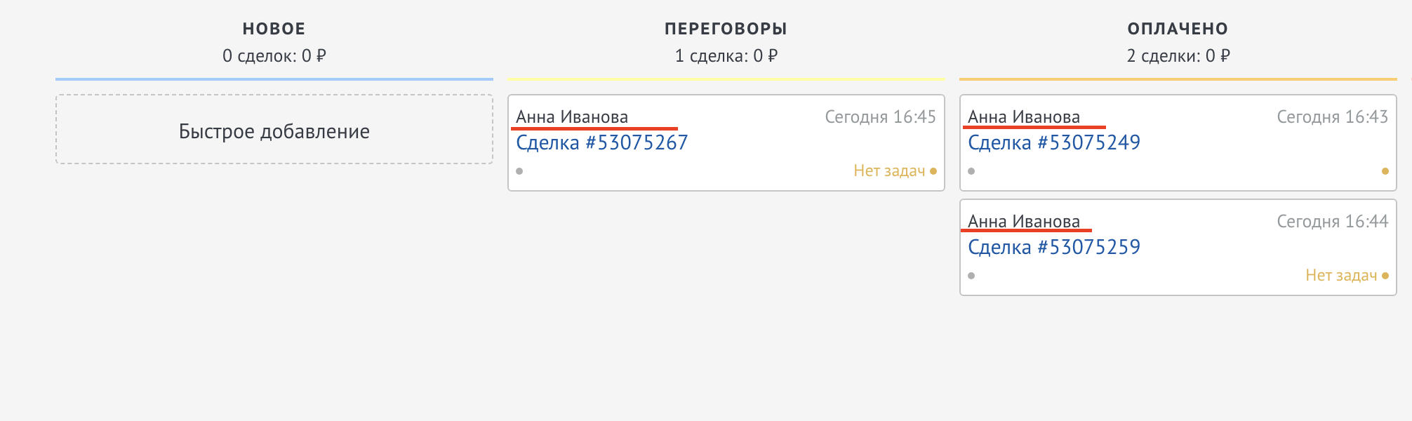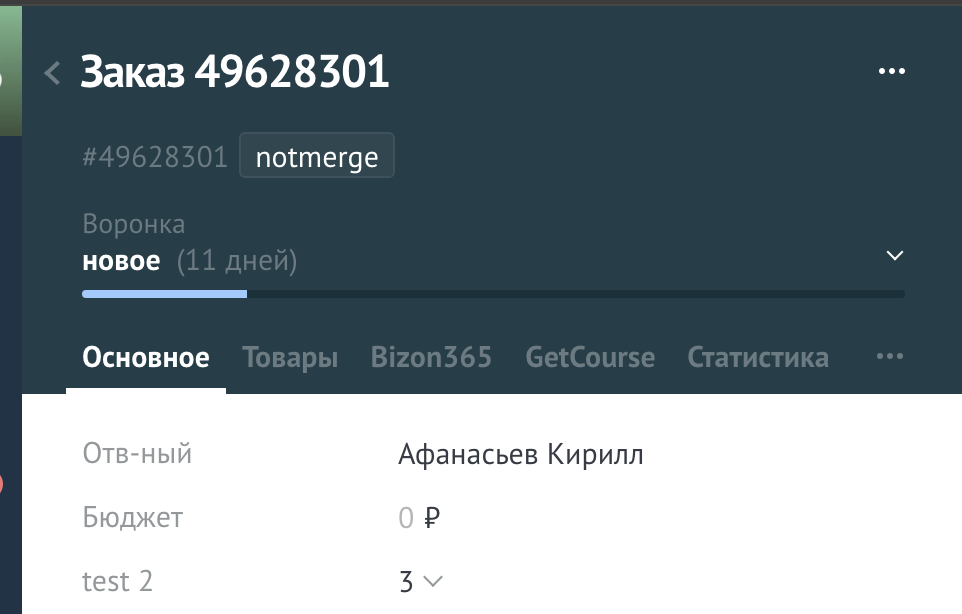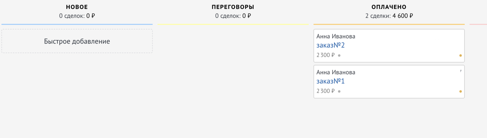 Данный виджет объединяет только сделки по одному контакту/компании.