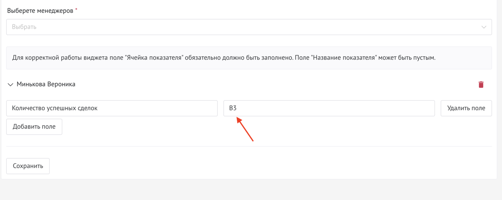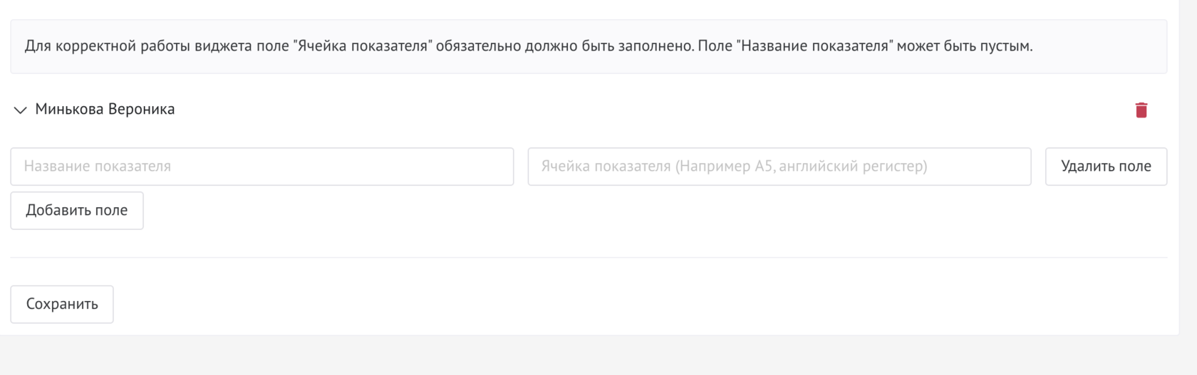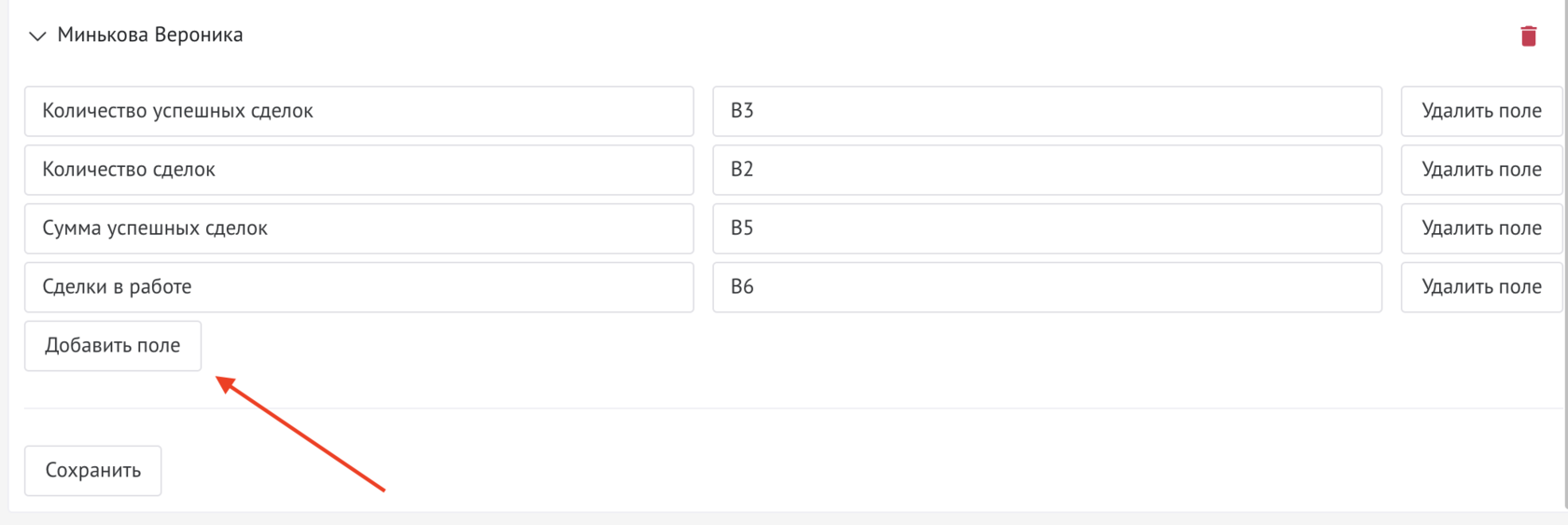 Далее можно добавить все показатели кликнув на кнопку Добавить поле
