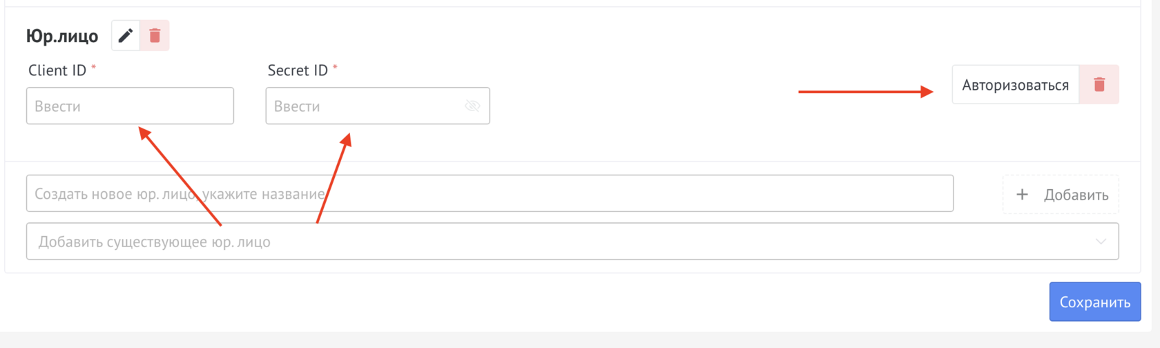 Ввести Client ID и Secret ID и нажать Авторизоваться