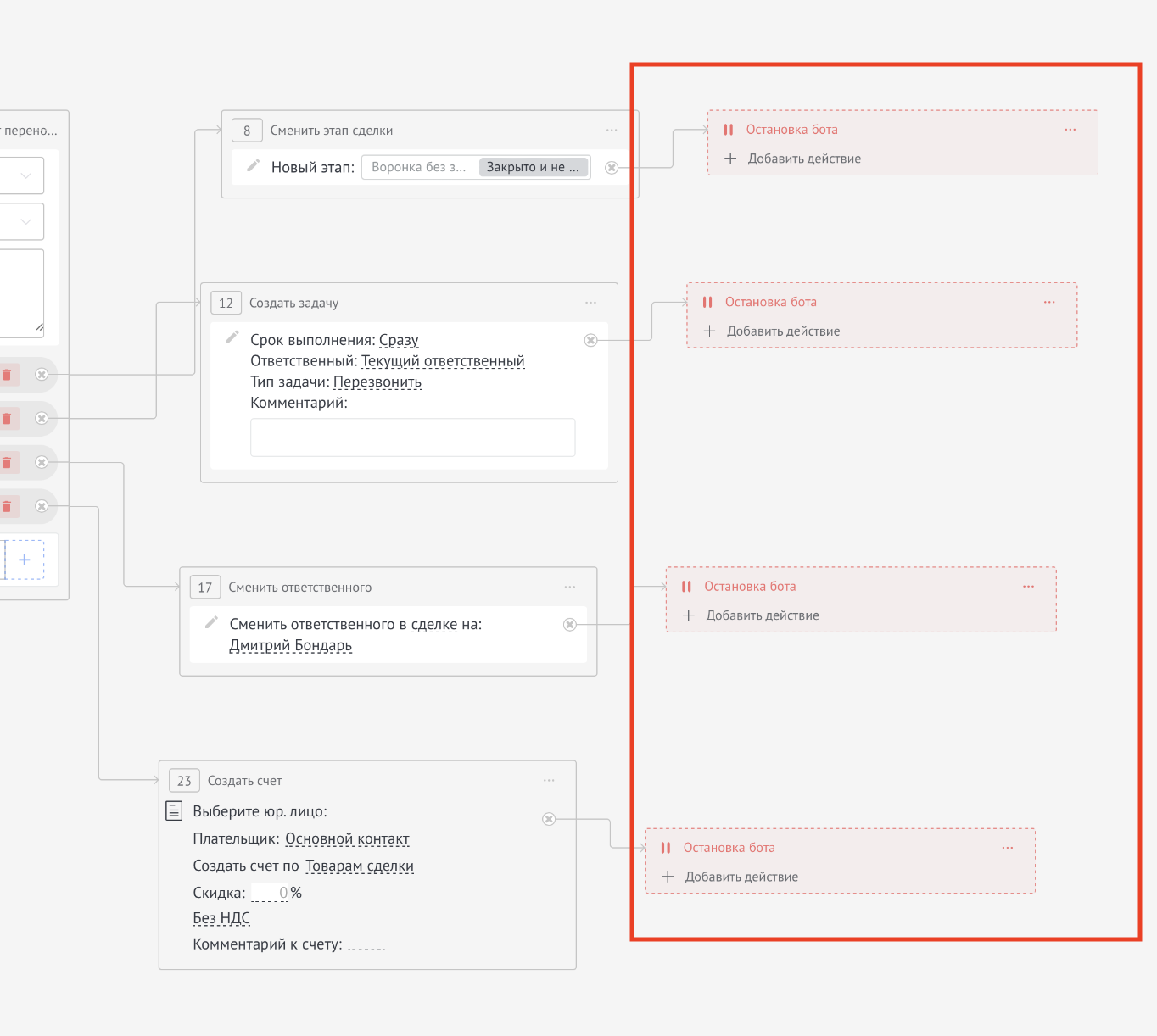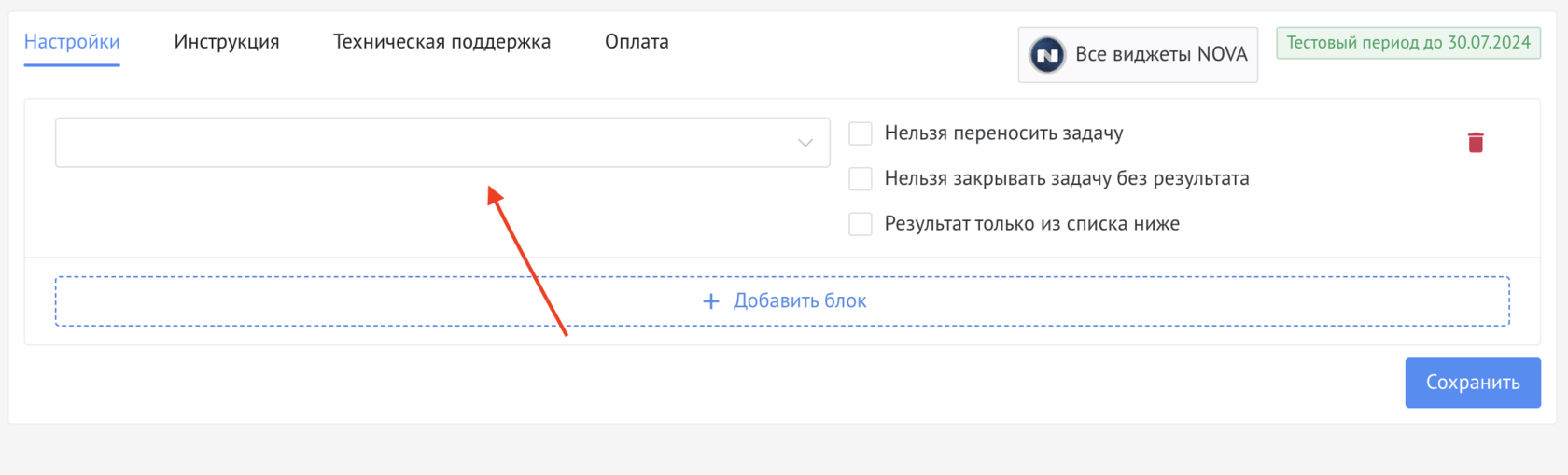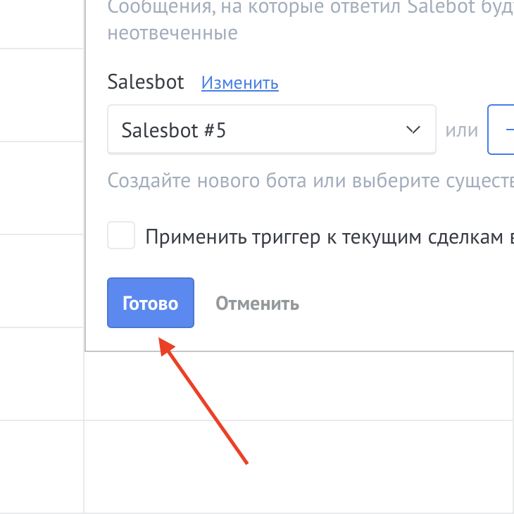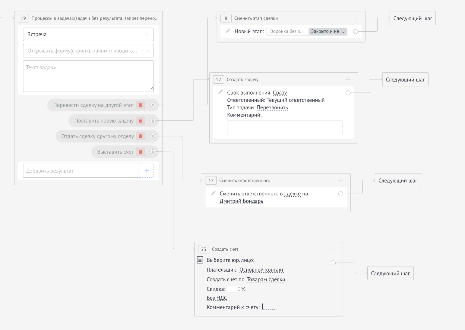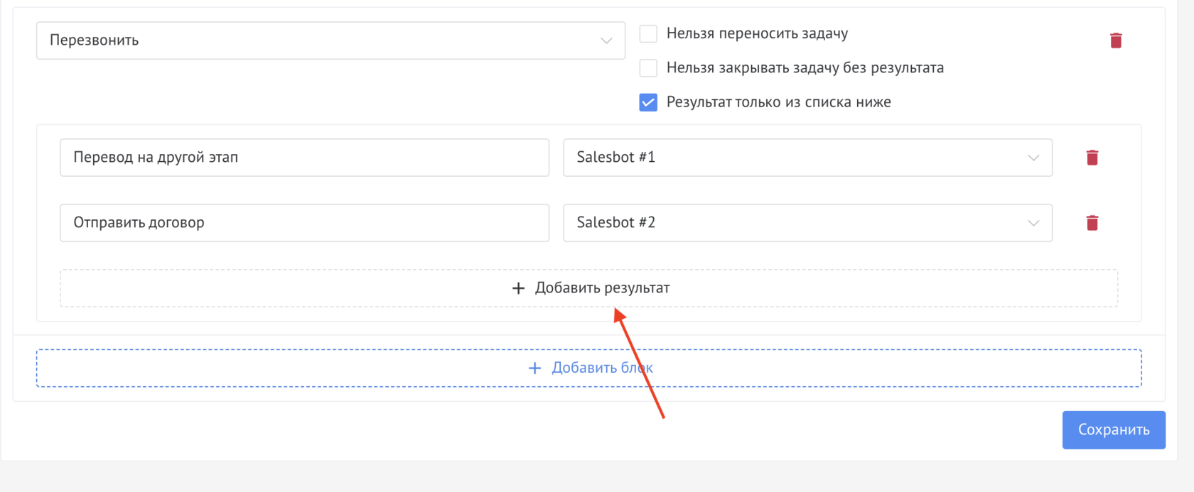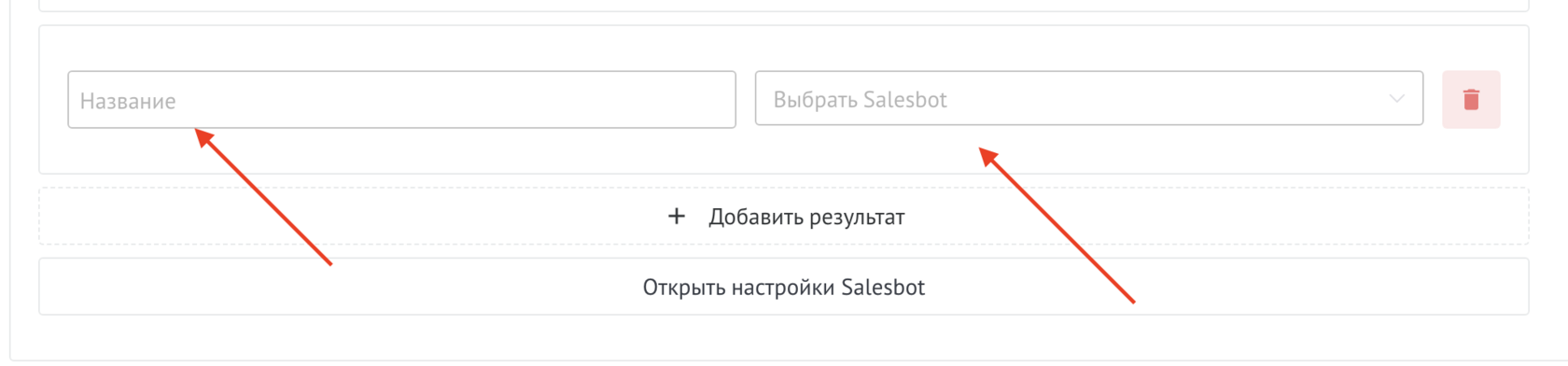 3. Результат только из списка ниже - при выборе отобразится блок в котором можно выбрать бота, при завершении задачи будет запускаться выбранный salesbot (далее будет подробно)