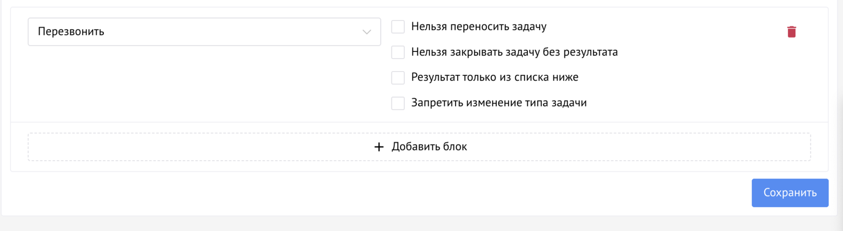 В выпадающем списке нужно выбрать тип задачи, которые были созданы