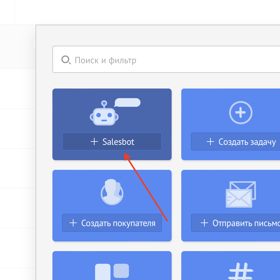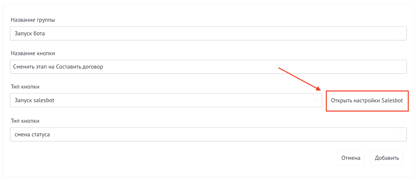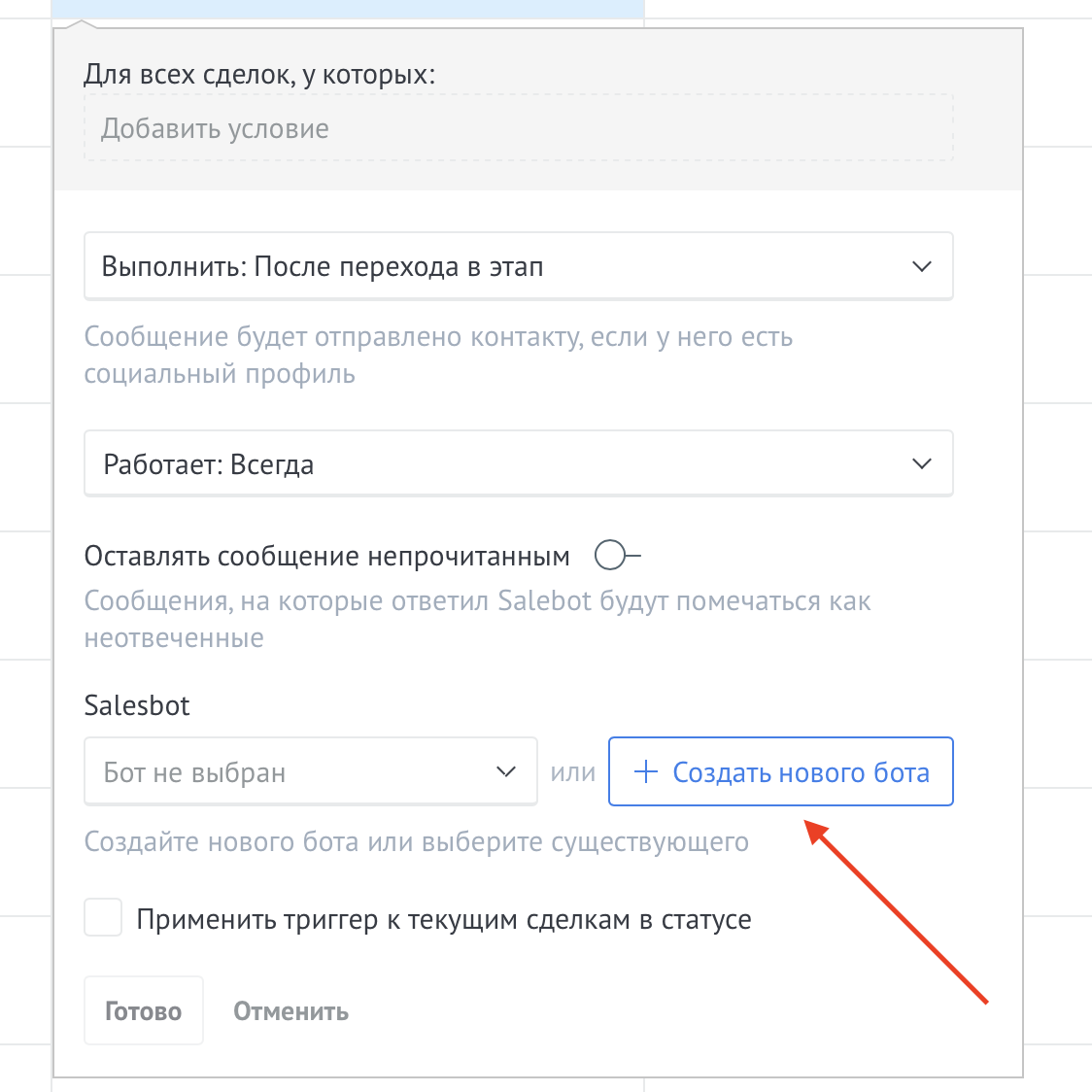 Так же можно прямо в настройка создать нового salesbot, для этого нужно кликнуть на Открыть настройки Salesbot