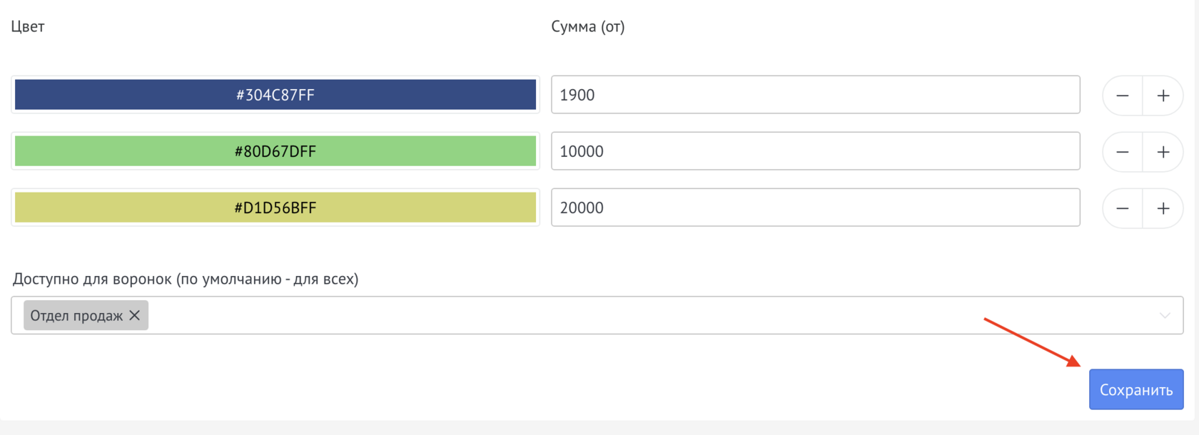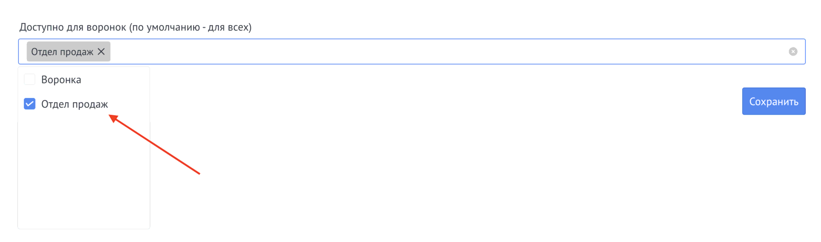 Выбрать в каких воронках будет работать виджет, по умолчание (воронки не выбраны) виджет будет работать для всех воронок