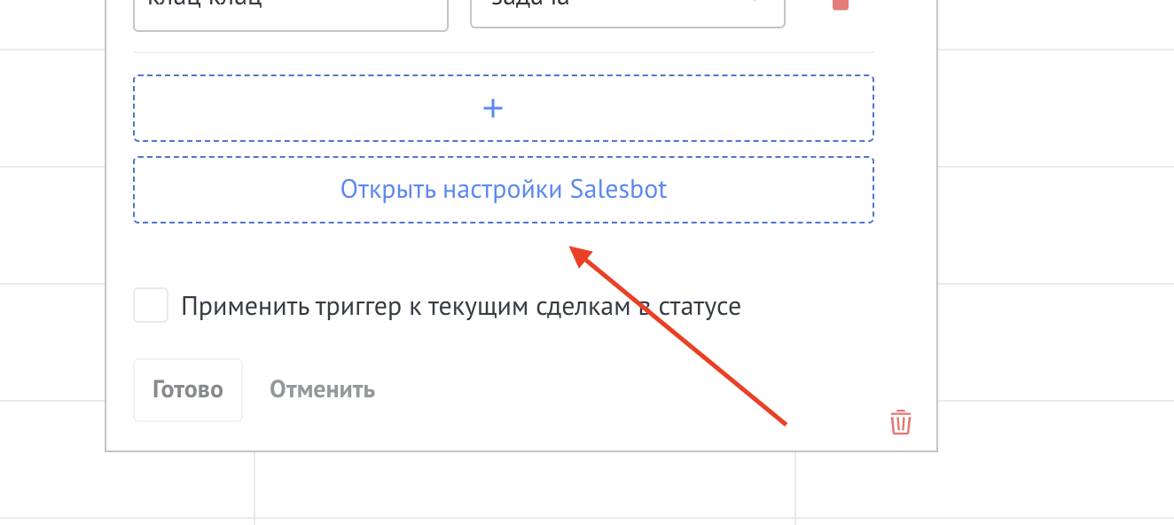 - Так же можно прямо в настройка создать нового salesbot, для этого нужно кликнуть на Открыть настройки Salesbot