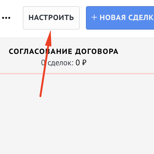 1. Перейти в сделку, найти вкладку Настроить и кликнуть на неё
