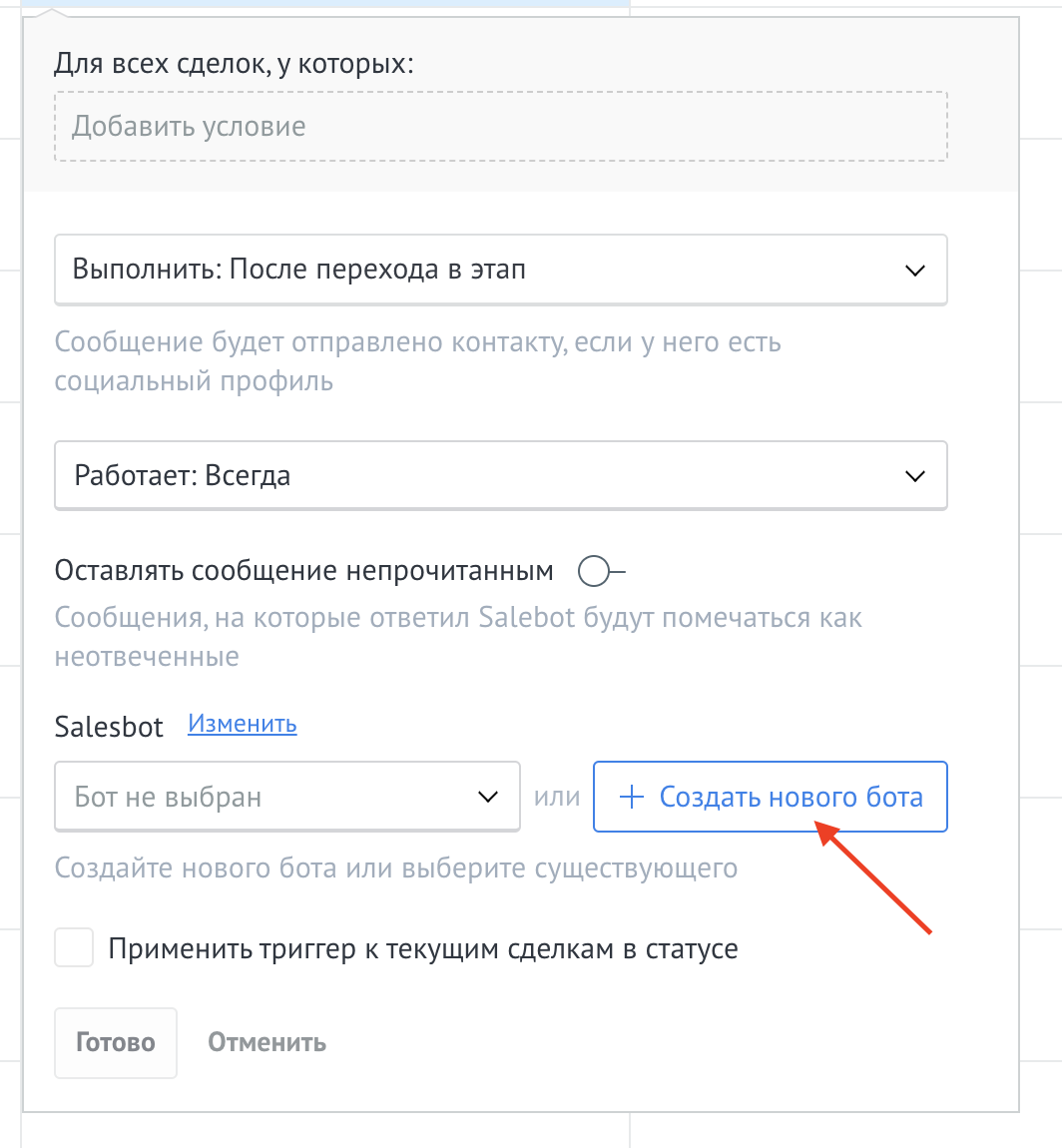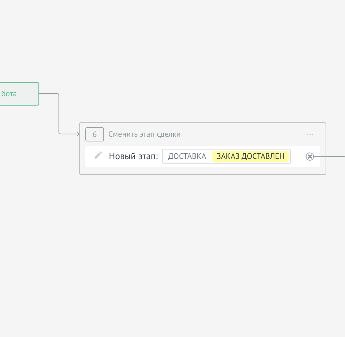 - Теперь создайте нового бота для смены этапа на Заказ доставлен