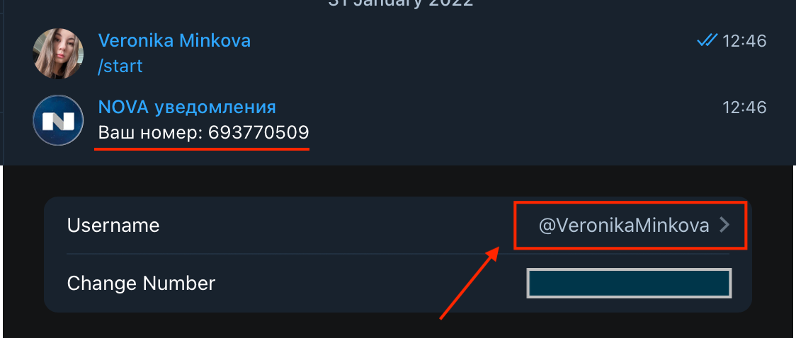 - Бот пришлёт номер — его также нужно вставить в настройки виджета.