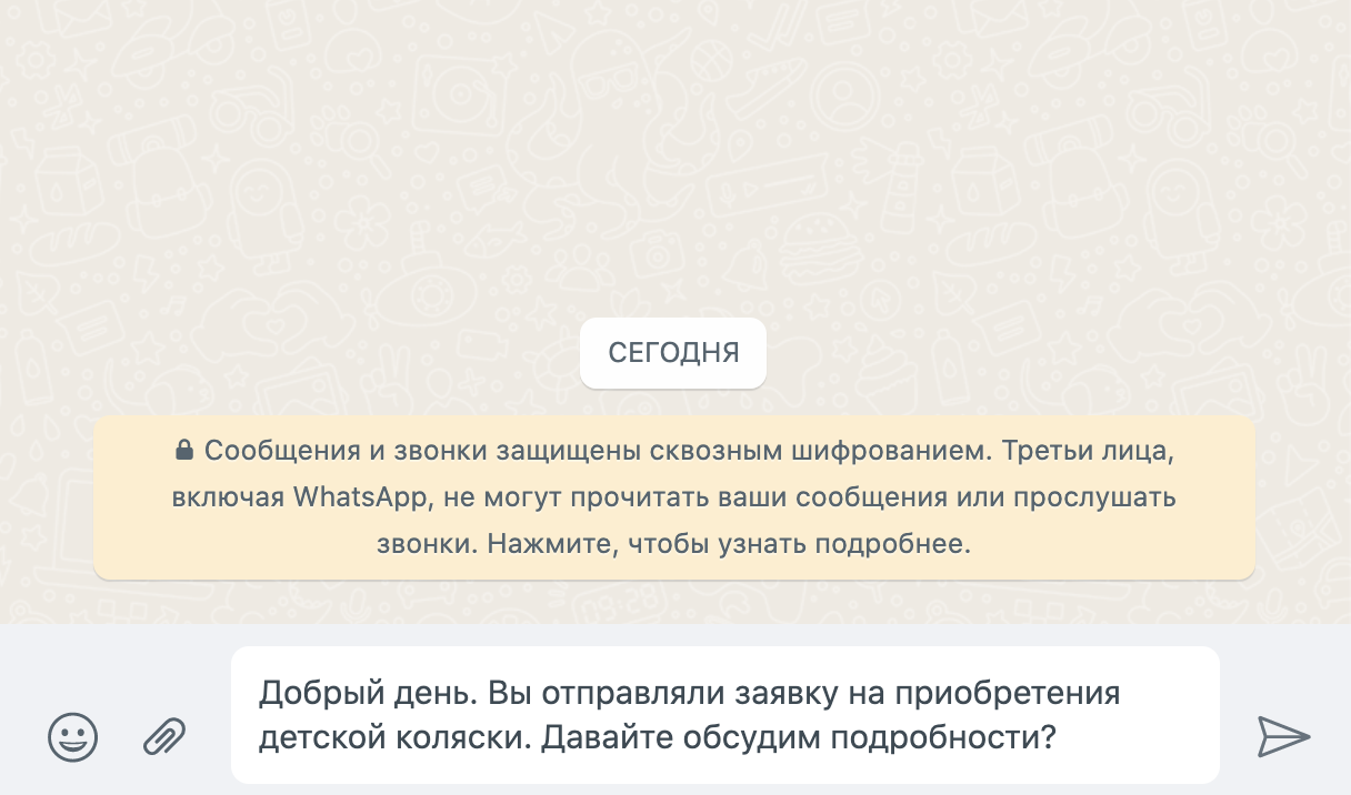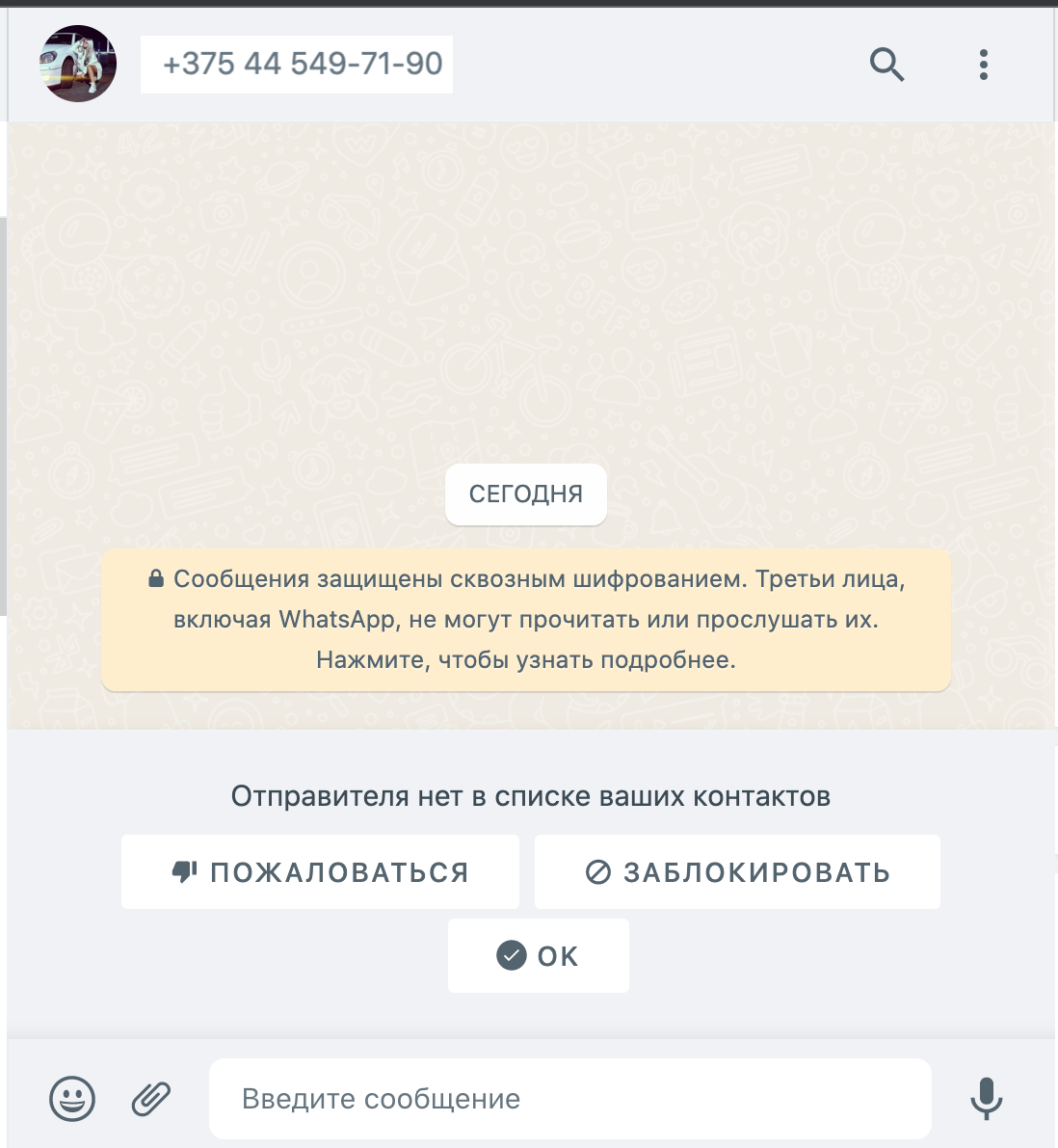 При клике на кнопку "Написать в WhatsApp Web", откроется окно WhatsApp в новой вкладке с диалогом владельца номера
