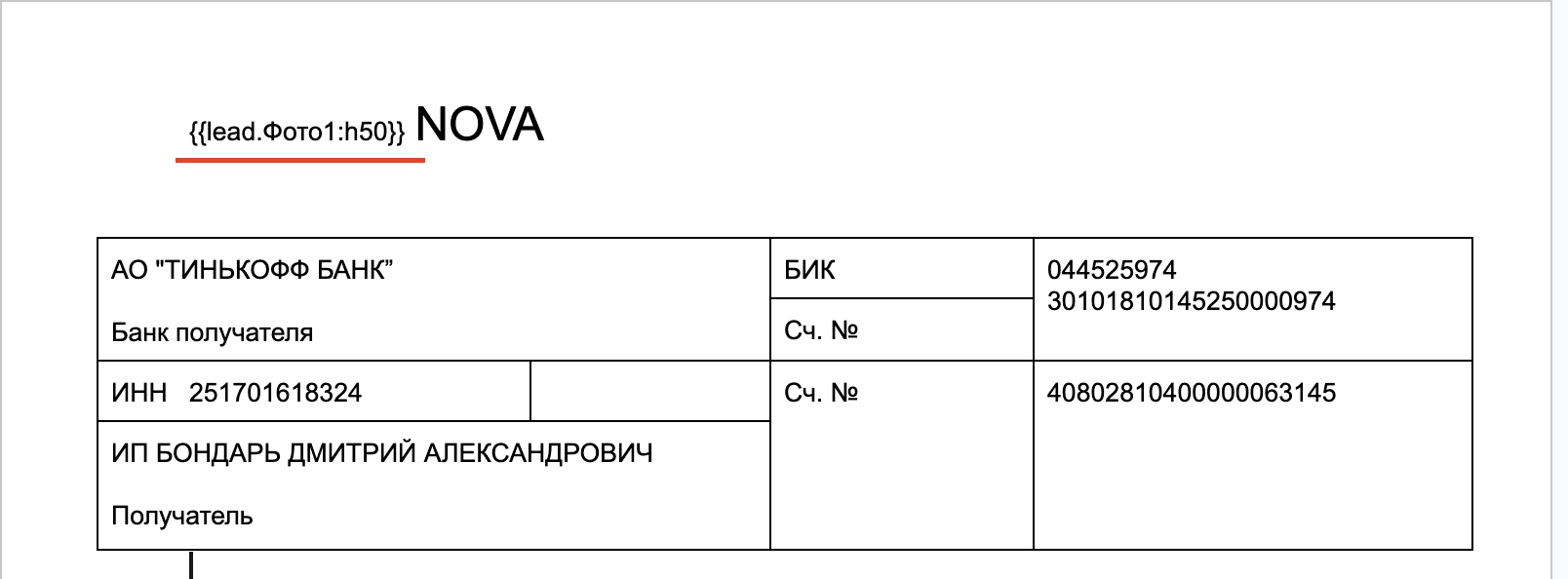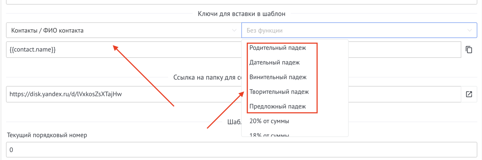 Далее, нам необходимо наполнить шаблон "ключами" полей, чтобы заполнять по ним информацию из карточки сделки/контакта/компании/товаров в шаблон документа, который загрузили в виджет.